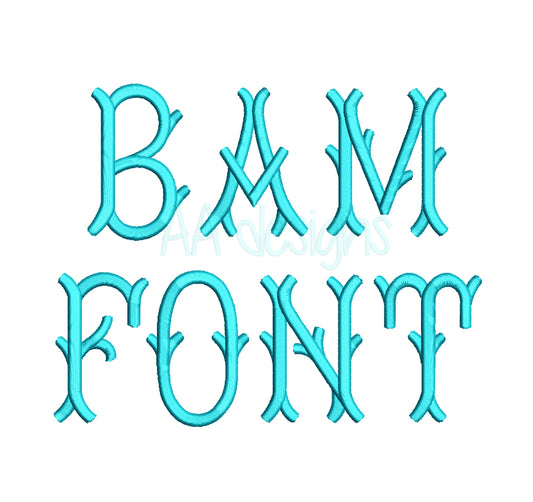 Bamboo embroidery digital font. Machine embroidery alphabet bamboo. Bx format