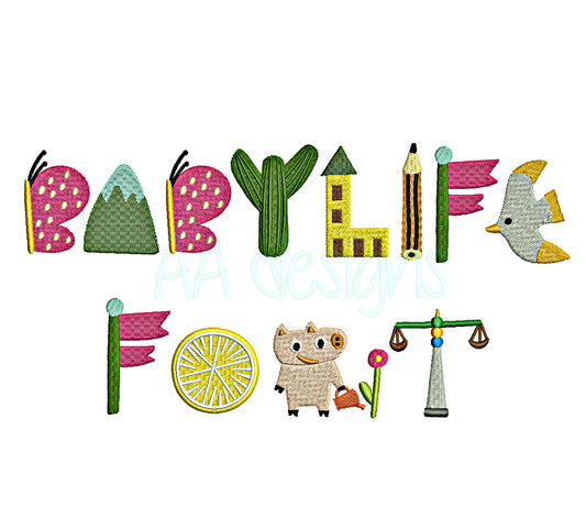 Baby Life embroidery font. Embroidery alphabet for baby. BX format