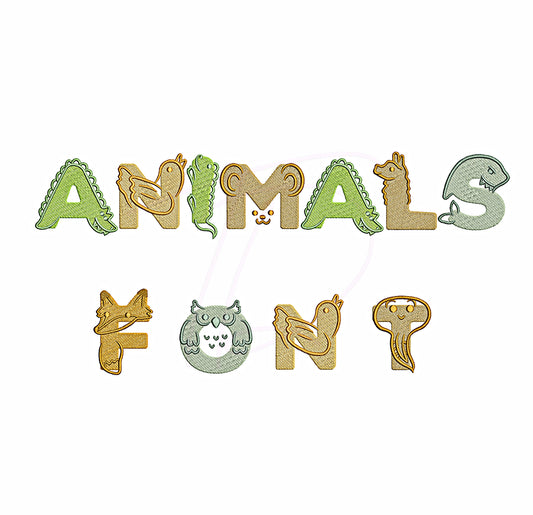 Animals embroidery digital font. Embroidery alphabet with animal for baby. BX format
