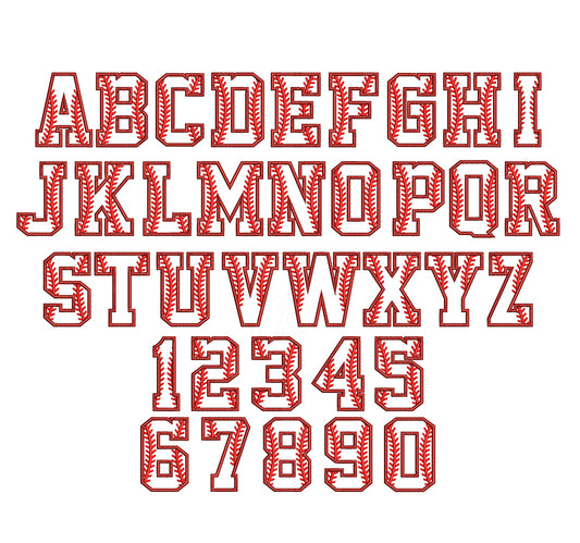 Baseball full stiches embroidery font. Machine baseball alphabet.
