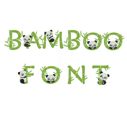 Bamboo Panda embroidery font. Embroidery alphabet with bamboo Panda. Cute font for embroidery.