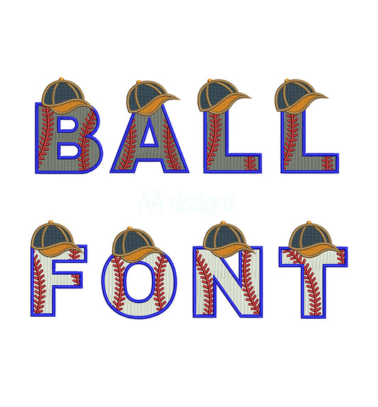 Baseball applique font. Baseball machine embroidery applique font. BX format