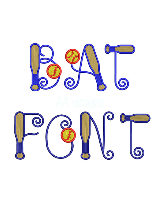 Baseball bat embroidery font. Baseball machine embroidery alphabet. BX format