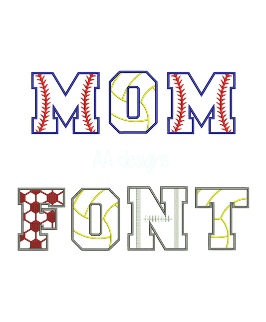 Baseball Mom Applique embroidery font. Machine embroidery baseball alphabet. BX format